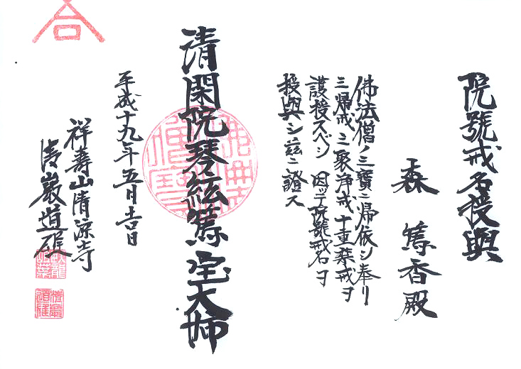 森 篤香 清閑院琴絃篤宝大姉 せいかんいんきんげんとくほうだいし