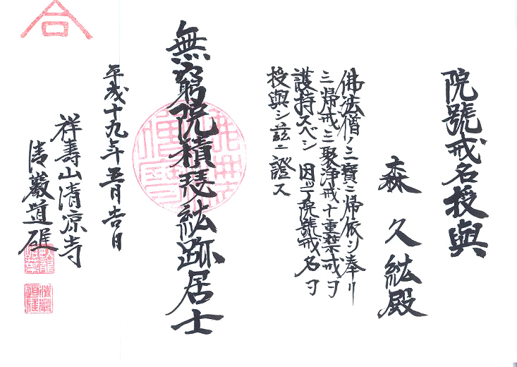 森 久紘 無窮院積瑟紘跡居士 むきゅういんせきしつこうせきこじ